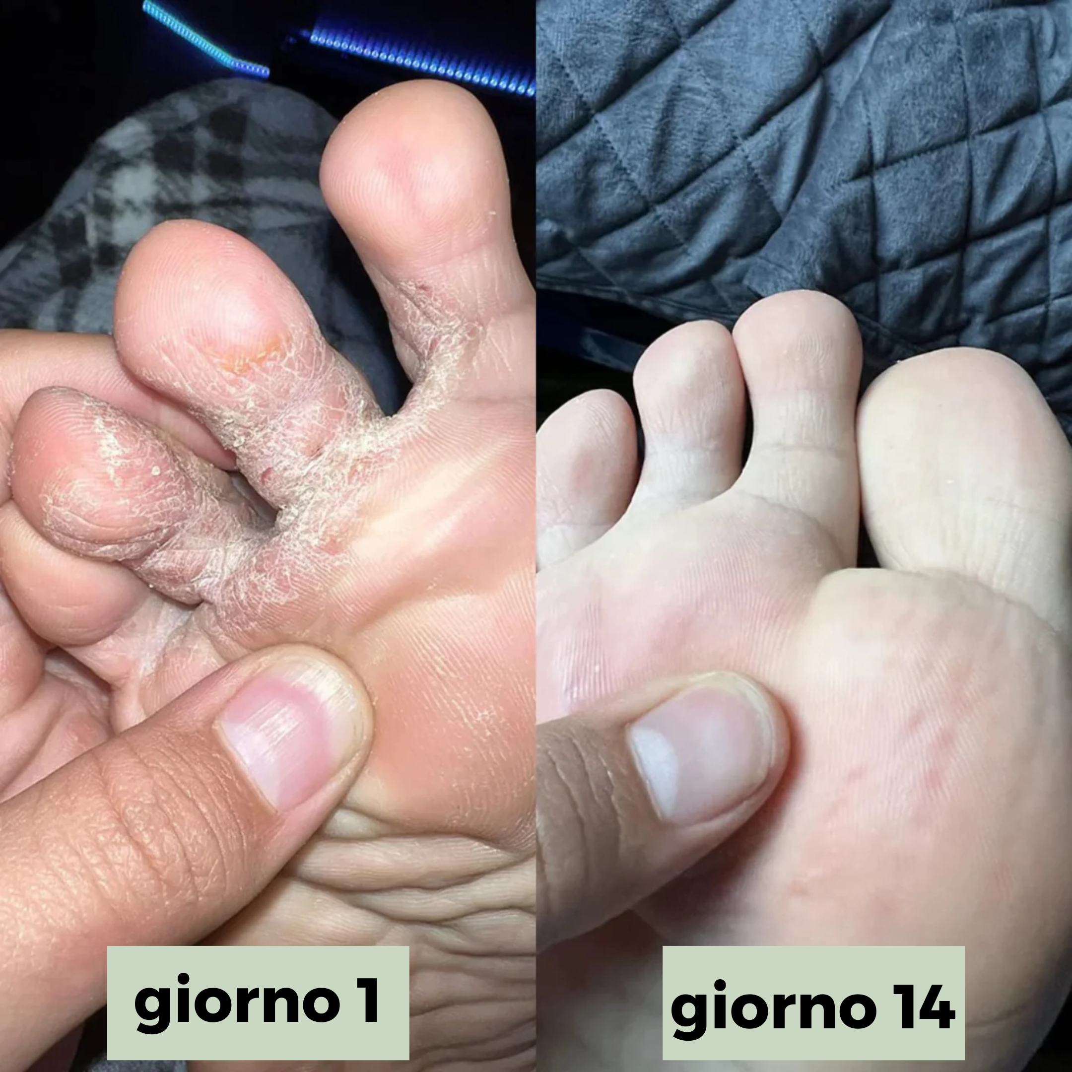 La maggior parte delle persone nota una riduzione del prurito e degli odori entro 1-2 settimane. Finalmente inizierete a sentirvi a vostro agio nelle vostre scarpe.